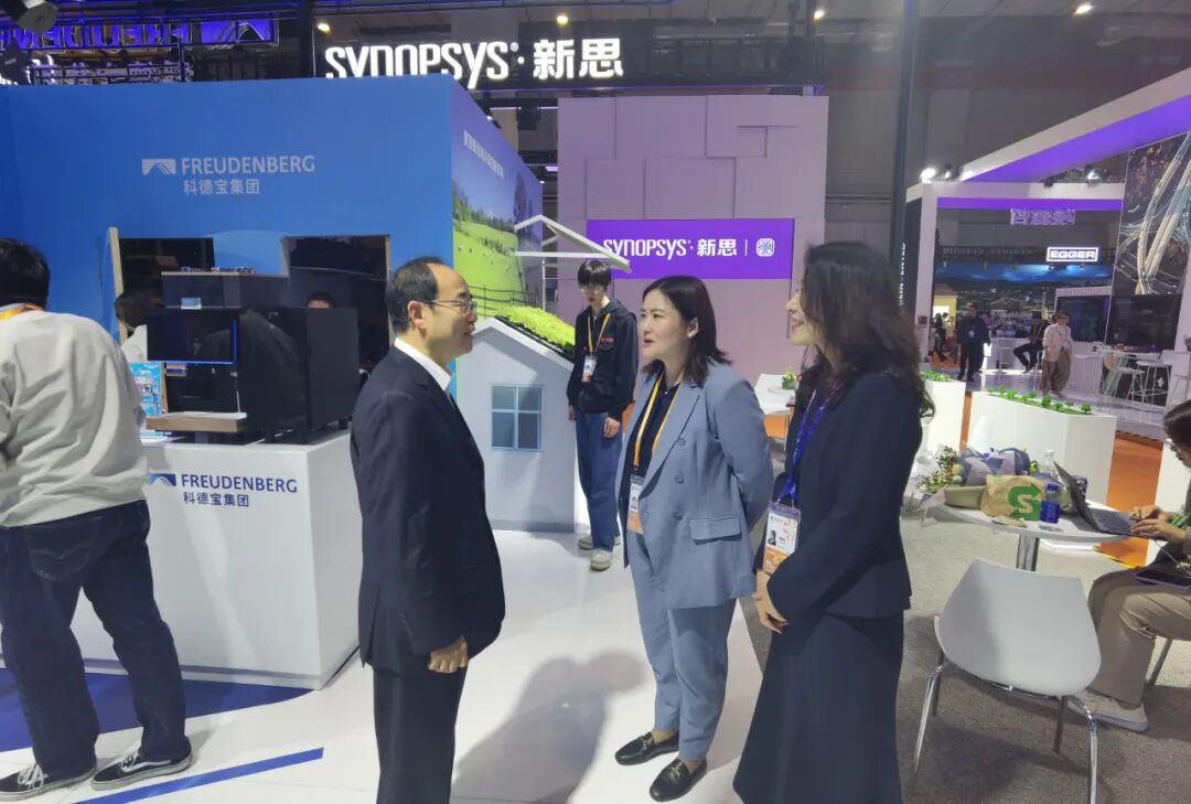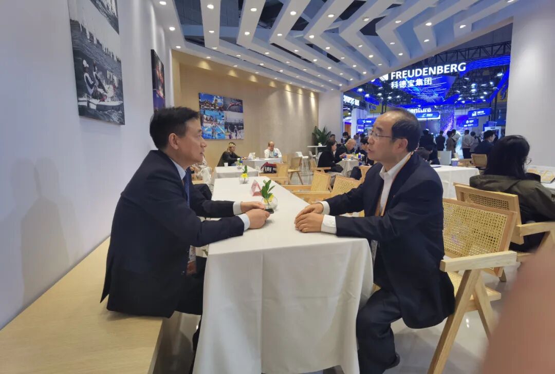 在科德宝展厅,与中国区总裁王嘉毓,政府事务负责人余珊珊交流。
